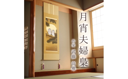 - 掛け軸「月宵夫婦梟」 武藤高雅 尺五立 サイズ:54.5×190cm 桐箱付 掛け軸 和室 おしゃれ 日本画 表装 床の間