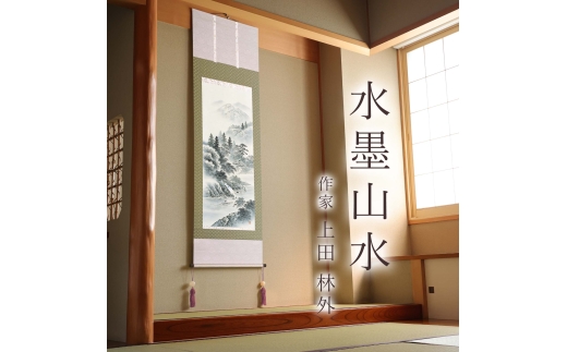 掛け軸「水墨山水」 上田林外 尺五立 サイズ:54.5×190cm 桐箱付 掛け軸 和室 おしゃれ 日本画 表装 床の間