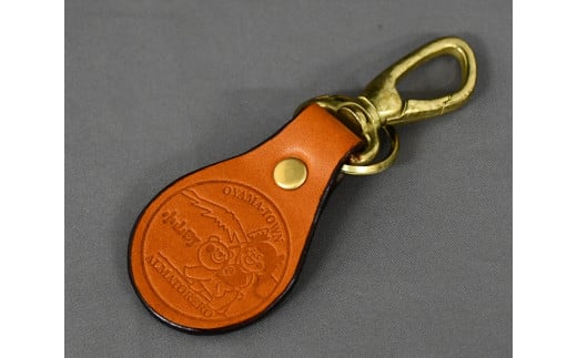 - レザーキーホルダー 【金太郎と仲良しクマちゃんが富士山に登るよ!】 ゴールド 【 レザー レザー製品 皮 皮製品 キーホルダー 小物 牛皮 静岡県 小山町 】