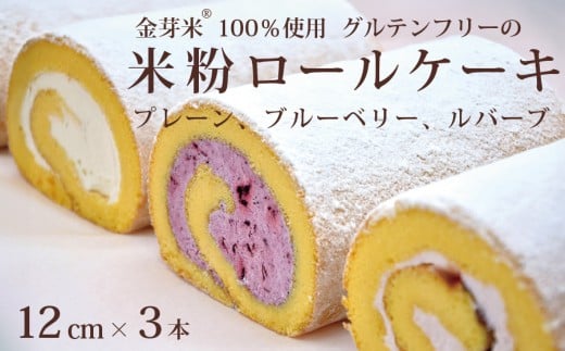 - 米粉ロール〈グルテンフリー〉プレーン/ブルーベリー/ルバーブ 12cm×3本 しっとりもっちり老舗のご褒美スイーツ 大正三年 菓子庵まつりや 【長野県信濃町】