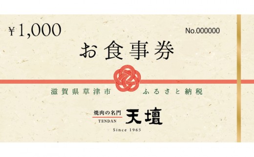 焼肉の名門天壇草津店でご利用いただけるお食事券 30000円分