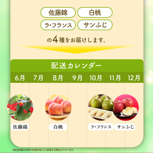 - ※2026年発送※【令和8年産】山形県産 4種類 旬のフルーツ定期便(計4回) さくらんぼ 桃 ラフランス ふじりんご ka008-101e-r8