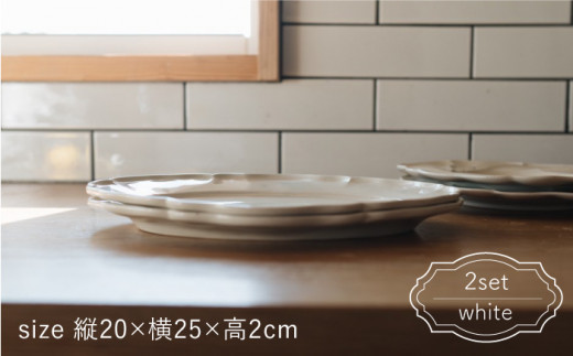 - 【波佐見焼】オーバル 輪花皿 プレート 白 2枚セット 食器 皿 【イロドリ】 [KE07] カレー皿 オーバルプレート パスタ皿 長皿 かわいい アンティーク 大皿 20cm 25cm