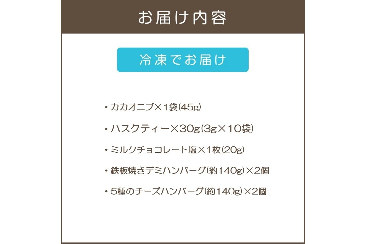 - 【A7-077】鉄板焼ハンバーグ(2種各2個)&カカオ研究所 こだわりチョコセット