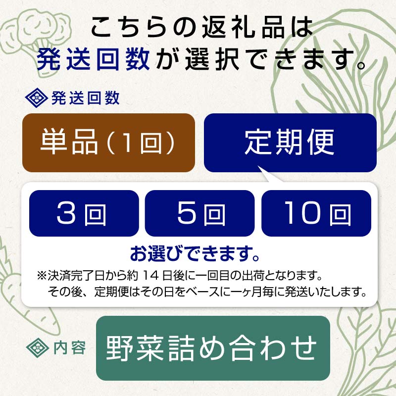 - 【ふるさと納税】《お届け回数が選べる》津軽の季節の野菜詰め合わせセット 【中泊町特産物直売所ピュア】1回 3回 5回 10回 定期便 旬の野菜 旬野菜 旬 新鮮 食品 グルメ 詰め合わせ 冷蔵 ファーマーズマーケット 野菜 美味しい 甘い サラダ 中泊町 青森 F6N-022var