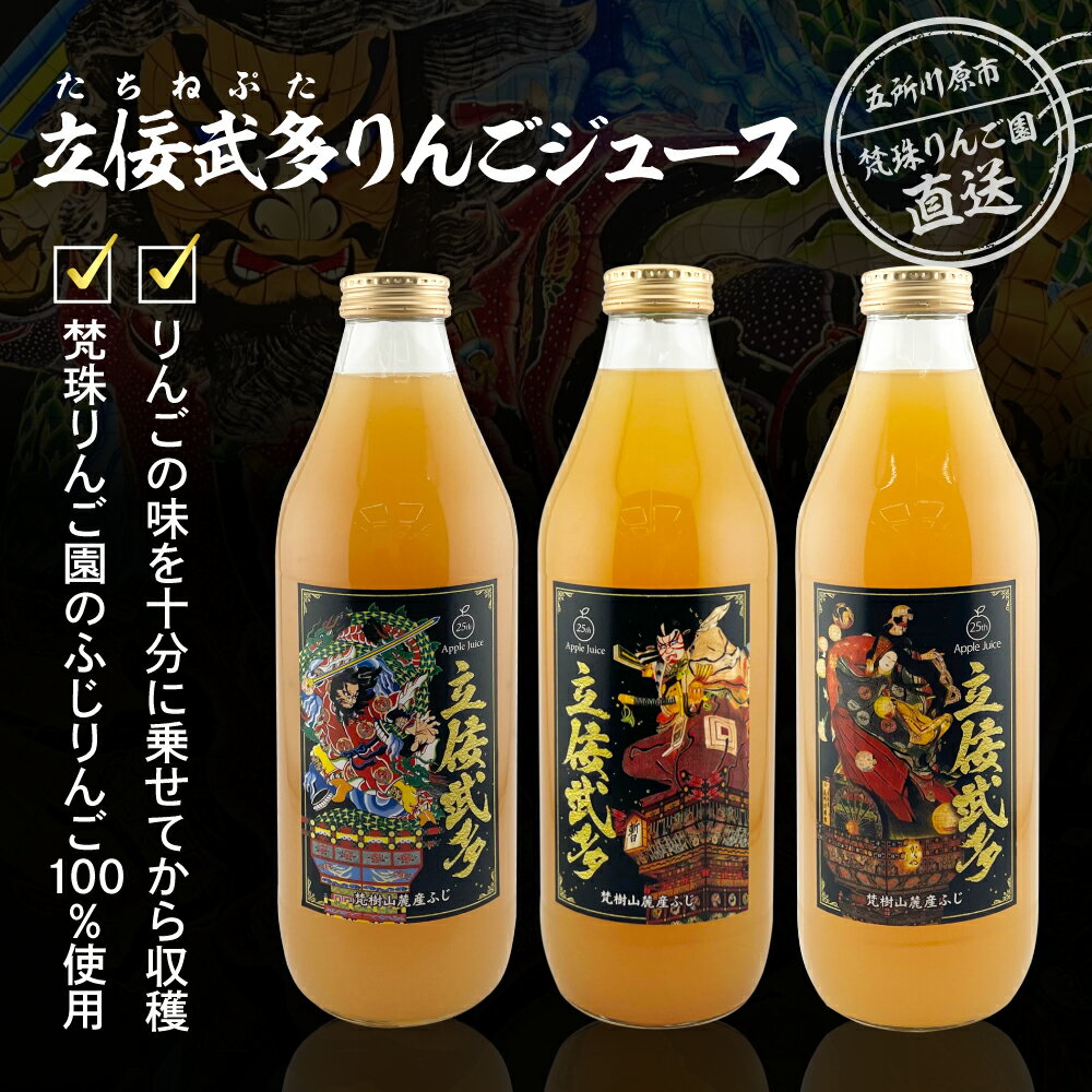 - 【ふるさと納税】 【順次発送中!】りんご ジュース 100% ふじ ストレート 1L×3本 瓶 立佞武多 五所川原 市 青森 県 【 果汁100% リンゴジュース たちねぷた たちねぶた ねぷた フルーツ くだもの ギフト 果汁飲料 アップル 青森りんご 送料無料 フルーツジュース 】