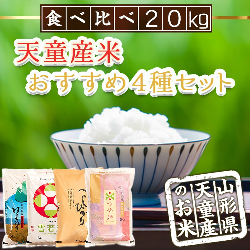 - 【ふるさと納税】 天童産米 おすすめ 4種 セット 5kg×4品種 計 20kg 令和7年産 米 コメ おこめ お米 精米 ブランド米 食べ比べ 利きご飯 5kg 袋 小分け おすそ分け お取り寄せ 食品 送料無料 【 山形県 天童市 】