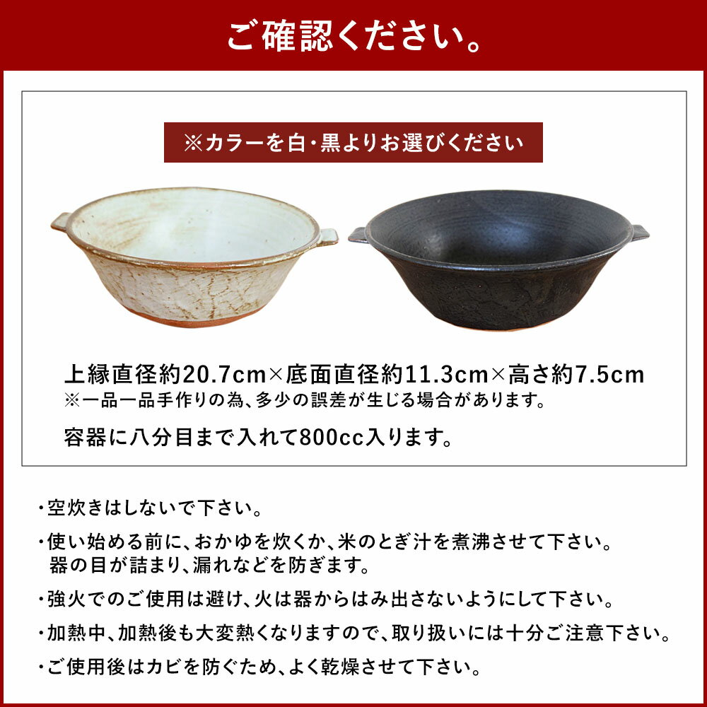 - 【ふるさと納税】<選べるカラー>個鍋 黒 / 白 陶工房 浩hiro 手作り 土鍋 鍋 一人用 一人前 二人鍋 どんぶり型 直火調理 オーブン調理 調理器具 キッチン用品 冷めにくい 料理 お鍋 ラーメン 煮込みうどん 豆乳しゃぶしゃぶ おでん シチュー 福岡県 太宰府市 送料無料