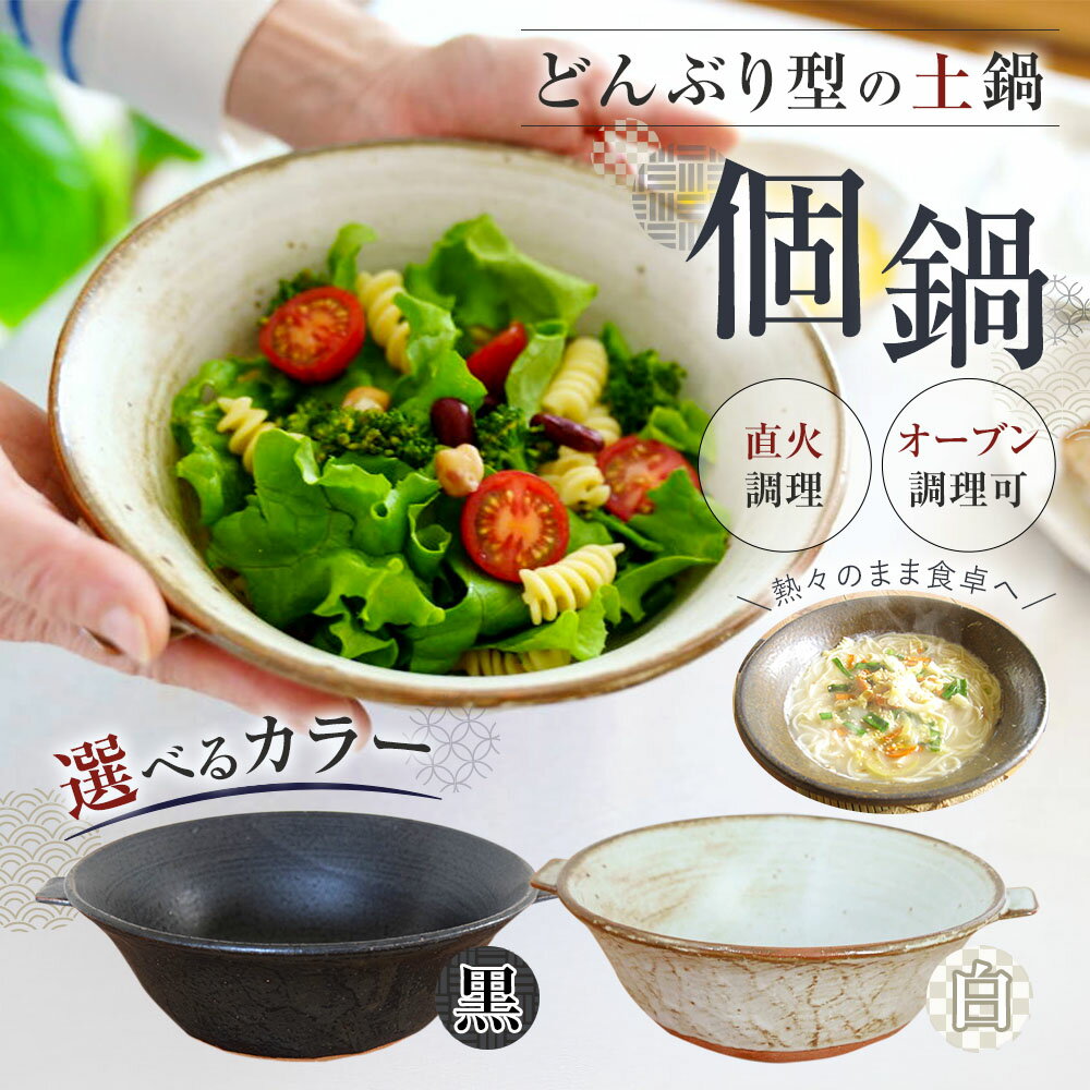 【ふるさと納税】<選べるカラー>個鍋 黒 / 白 陶工房 浩hiro 手作り 土鍋 鍋 一人用 一人前 二人鍋 どんぶり型 直火調理 オーブン調理 調理器具 キッチン用品 冷めにくい 料理 お鍋 ラーメン 煮込みうどん 豆乳しゃぶしゃぶ おでん シチュー 福岡県 太宰府市 送料無料