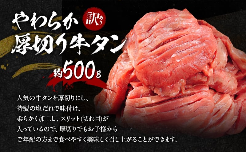 - 【朝倉市制施行20周年記念企画】 訳あり やわらか厚切り 牛タン 500g+ 薄切り 牛タンスライス 塩仕込み 500g+ 厚切り 牛ハラミ ステーキ 塩仕込み 計1.5kg(500g×3p) ※配送不可:離島