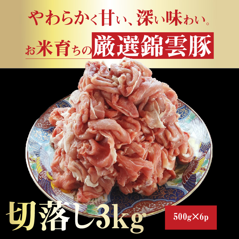 【ブランド豚肉】お米育ちの錦雲豚 切落し3kg 500g×6p FN1202