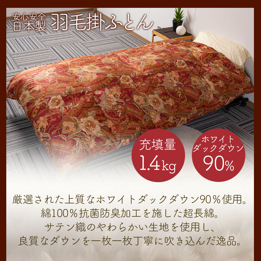 - <羽毛掛ふとん ホワイトダックダウン90% フェザー10% 充填量 1.4kg(暖色系)>日本製【MI038-bs-01】【株式会社ベストライフ】