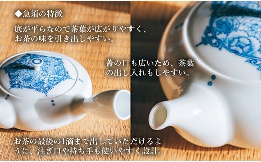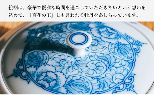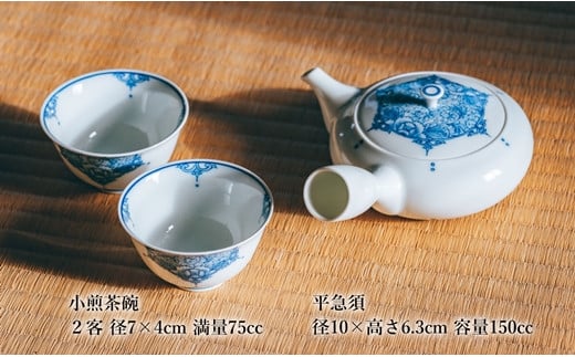 - 〈平戸松山窯〉間取牡丹唐草 茶器(急須1個・小煎茶碗2客)