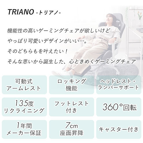 ゲーミングチェア TRIANO トリアノ 1脚 イス 椅子 チェア インテリア 家具 かわいい おしゃれ キャスター付き ゲーム ゲーミング 機能性 多機能 兵庫 兵庫県 小野市