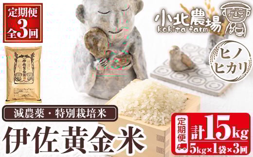 - isa601 《数量限定・3回定期便》令和7年産 小北農場 伊佐黄金米のお米〈ヒノヒカリ〉(計15kg・5kg×1袋×3回) 鹿児島 伊佐 お米 特別栽培米 伊佐米 白米 ヒノヒカリ ひのひかり おにぎり ごはん 【小北農場】
