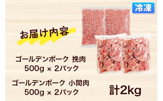 肉 豚 【冷凍】ゴールデンポーク 挽肉 & 小間肉 2kg セット 257024R