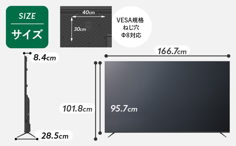 - チューナーレステレビ 75型 ダイコーアペックス 4K対応 液晶モニター (AP75DPX) セカンドテレビ 75V 子ども用 寝室用 ウルトラハイビジョン 壁掛け可能 VESA対応 家電 電化製品 75インチ 法人用にもおすすめ 会議室 ホテル 学校 病院 デジタルサイネージ 送料無料 山梨県上野原市