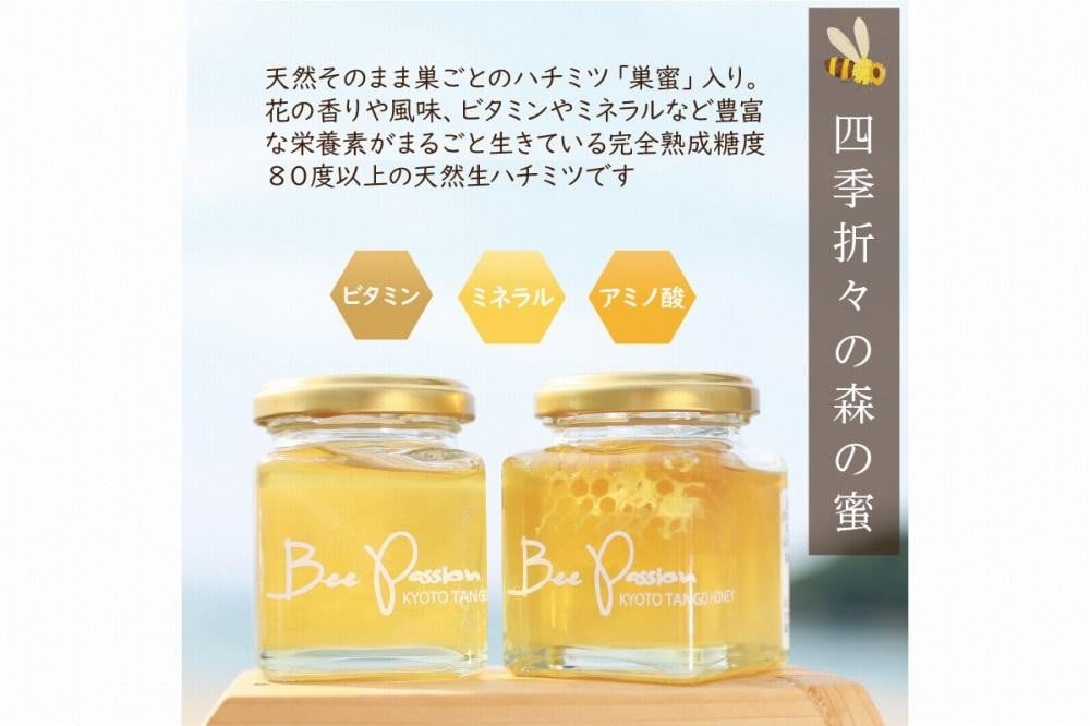 【国産 ハチミツ・巣密入り】KYOTOTANGOHONEY森の百花蜜純粋天然ハチミツ(巣蜜入り 純粋 天然ハチミツ150g、純粋 天然ハチミツ150gセット)蜂蜜・はちみつ・国産・天然・ハチミツ・巣みつ・巣密・純粋はちみつ RM00010