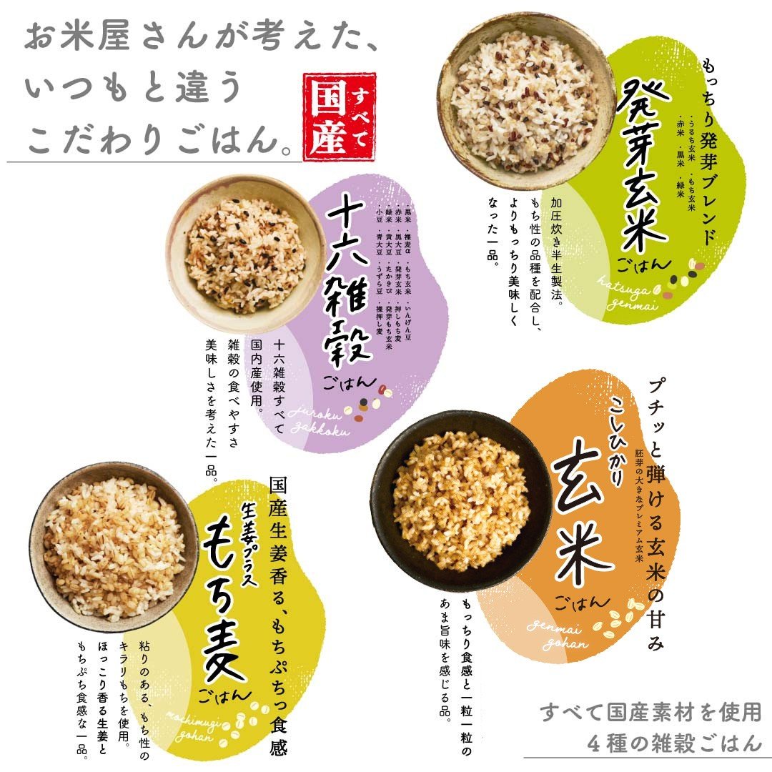 - 【 生活応援 】雑穀ごはん アソートセット 4種 160g 6個-72個 十六雑穀 発芽玄米 玄米 もち麦 パックごはん genmai GENMAI パックご飯 ごはんパック ご飯パック パックライス パック 16雑穀 雑穀 米 ごはん ご飯 こめ ライス 備蓄 保存 防災 レンジ 温めるだけ レンチン 簡単 調理 健康 栄養 美容 レトルト インスタント 国産 セット おくさま印 大阪 松原