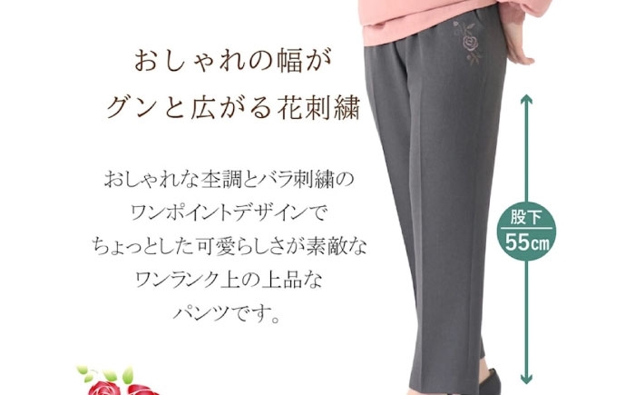 【選べるカラーとサイズ】バラポケット刺繡パンツ 股下55cm 広島県福山市/株式会社ナツメダ ズボン ウエスト ゴム モカ グレー ブルー [BACU053]