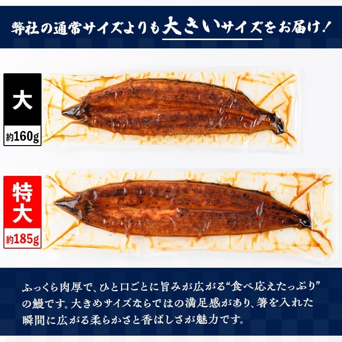- C57006 特大うなぎ蒲焼(有頭)(5尾・計925g以上、タレ、山椒付) 鹿児島 国産 九州産 大隅産 鰻 うなぎ ウナギ 蒲焼き うな重 うな丼 ひつまぶし 丑の日 土用の丑の日 化粧箱 贈答 【一般社団法人きもつき宇宙協議会】