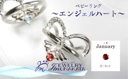 - ジュエリームナカタ 【1月 ガーネット】 ベビーリング ~エンジェルハート~ シルバー製/チェーンなし【11100-2347】