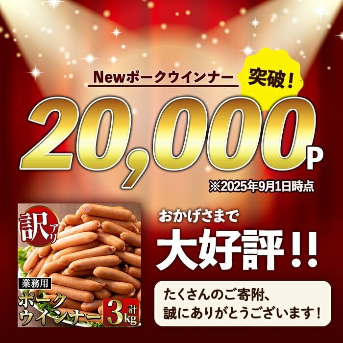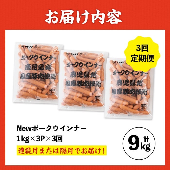 - i1203 <定期便・計3回(連続月or隔月選べる!)>《業務用・訳あり》New ポーク ウインナー (1kg×3P×3回・計9kg)ウインナー 豚肉 国産 肉加工品 訳アリソーセージ ウインナーソーセージ 簡易包装 業務用 おかず お弁当 晩御飯 生ハム 【ナンチク】