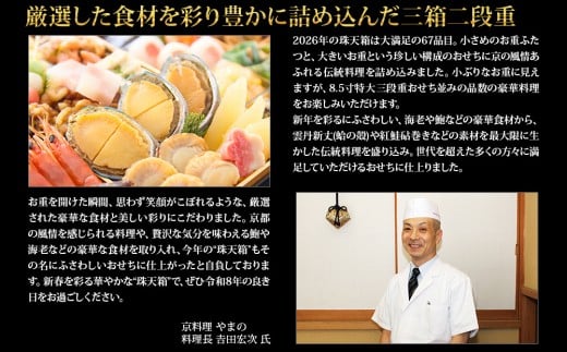 【京都御所南 京料理・やまの】監修三箱二段重 珠天箱 約4人前|京おせち 本格料亭おせち 人気おせち[ 京都 料亭 老舗 おせち 京料理 人気 おすすめ 2026 正月 お祝い おせち料理 グルメ ご自宅用 お取り寄せ 通販 送料無料 ふるさと納税 ]