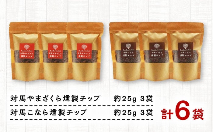 - 対馬の木でつくった燻製チップ 6袋セット 2種 《対馬市》【一般社団法人MIT】 やまざくら こなら 燻製 木材 キャンプ アウトドア スモーク 国産 [WAP027]