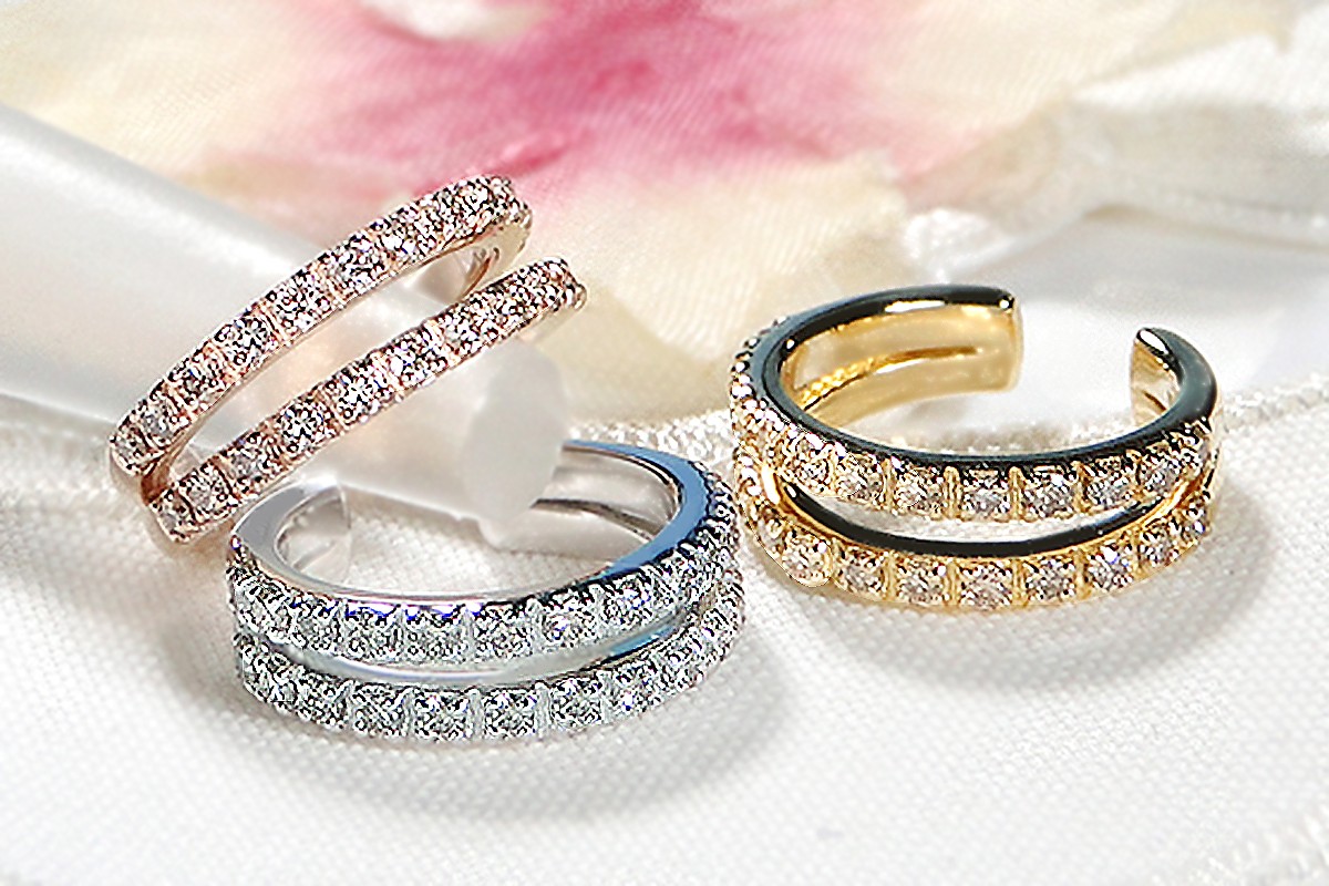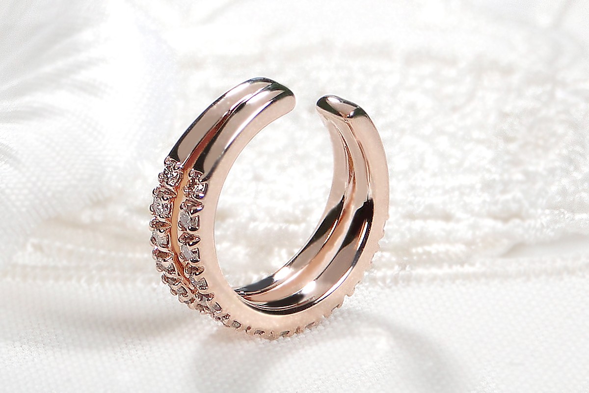 - K18PG ダイヤモンド 2連 イヤーカフ【片耳用】【0.26ct】 EmP0074-18P SWCJ001-pg