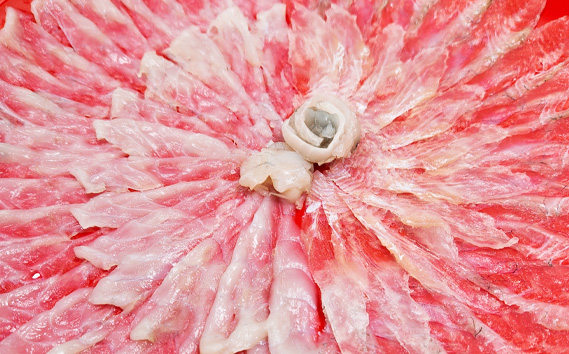 笠戸ひらめ・とらふぐ お刺身(朱皿プラスチック)約2~3人前【引換券】 / ヒラメ さしみ トラフグ 山口県 No.187