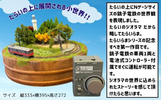 【受注生産】ジオラマ たらいらま一世( たらいに作った銚子電鉄Nゲージサイズミニジオラマ、車両、コントローラー付き ) Nゲージ ジオラマ 鉄道 マニア たらい 銚子電鉄 銚電 電車 鉄道 線路 ローカル 鉄道ファン 鉄オタ プラモデル フィギュア インテリア おうち時間 模型 もけい 雑貨 高額 送料無料 ふるさと納税 千葉県 銚子市 銚子電気鉄道株式会社