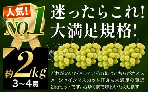 - 【アフター保証付】シャインマスカット 厳選 訳あり シャインマスカット 約2kg 3-4房【2026年先行予約】《9月上旬-11月上旬頃に出荷》岡山県 浅口市 シャインマスカット ぶどう フルーツ 果物 贈り物 ギフト 国産 岡山県産 送料無料 ブドウ