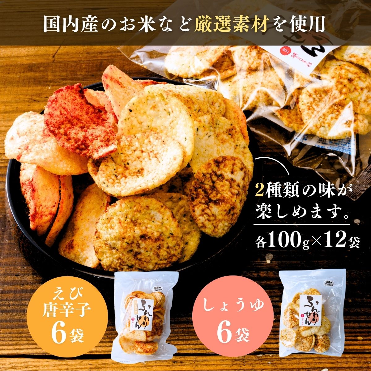 【定期便3回】老舗煎餅店「鍵林」のサクサク食べれる ふんわり煎餅 詰め合せ12袋 えび唐辛子 しょうゆ1.2kg(100g×12袋) | せんべい 揚げ煎餅 あげ煎餅 揚げせんべい あげせん こめ油 国産米 煎餅 醤油 七味 えび えび唐辛子 のり 食べ比べ おやつ ピリ辛 茨城県 龍ケ崎市