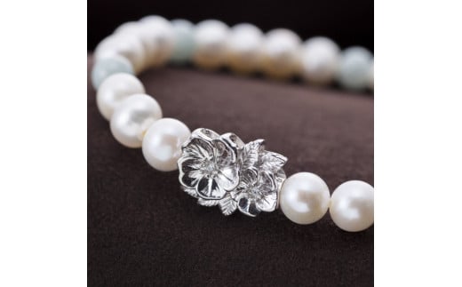 〈 甲府ジュエリー 〉山梨県甲府市にて製作 淡水真珠の寿ぎブレスレット 翡翠とダイヤ使用