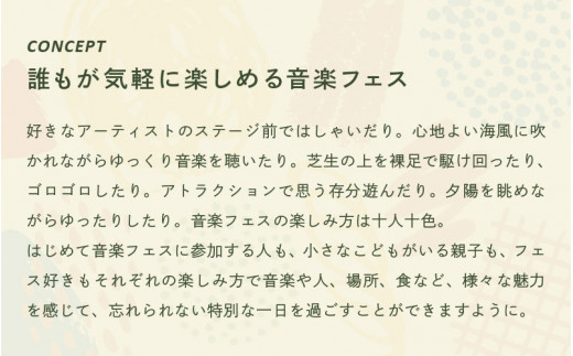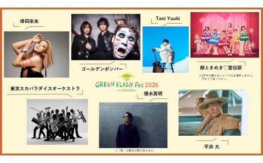 - 【先行予約】GREEN FLASH Fes 2026 -in SHIBAMASA- 入場チケット(大人1名)【5月30日(土)開催】フェス当日芝政アトラクション乗り放題!【2026年4月以降順次発送予定】【音楽イベント グリーンフラッシュ 野外ライブ ミュージック 音楽 フェス コンサート 芝政ワールド 入場券 アウトドア 遊園地 レジャー 非日常体験 体験】 [C-18002]