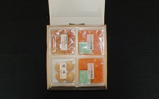 - A-42133 【北海道根室産】いくら醤油漬け50g×2P・ボイルたらばがに剥き身70g×1P・ほたて貝柱65g×1P