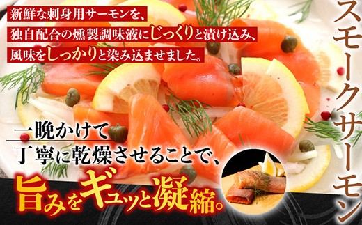 - E-09004 お刺身トラウトサーモン8~16本(計4kg)&スモークサーモン12~24枚(計3kg)