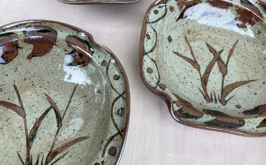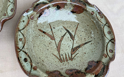絵唐津 草 千鳥文 四方 向付 5客組 器 | 陶器 窯元 和食器 焼き物【絵唐津草千鳥文四方向付】日本製 伝統工芸 ギフト 贈答 _h-10