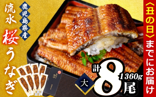 - 【丑の日までに配送】熟練の技が冴える!うなぎの柳澤 流水桜うなぎの蒲焼き8尾(計1360g) f0-023-us