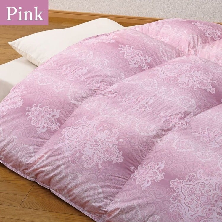 羽毛布団シングル掛け布団日本製ダウン90%1.2kg立体スクエアキルト8か所ループ付き花柄ピンク