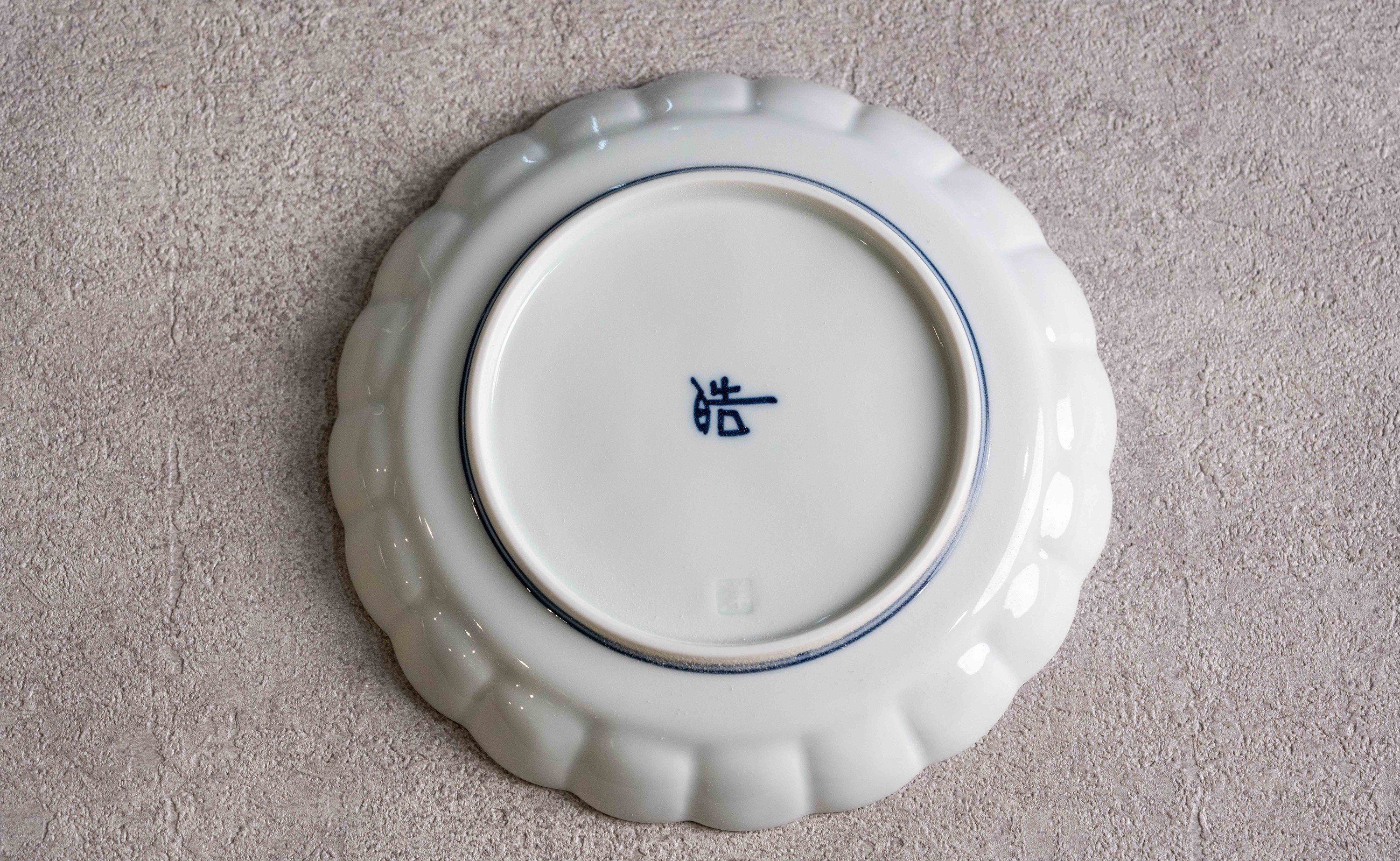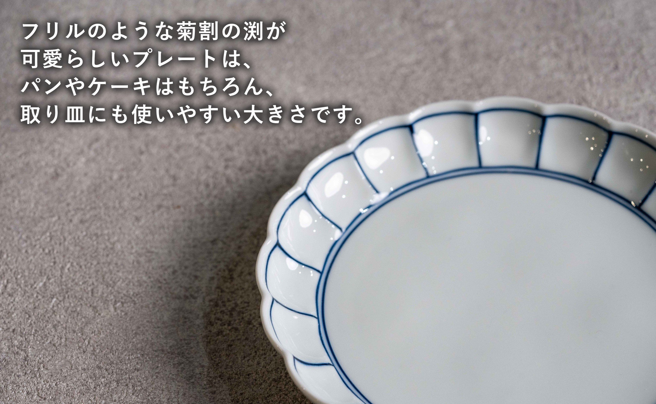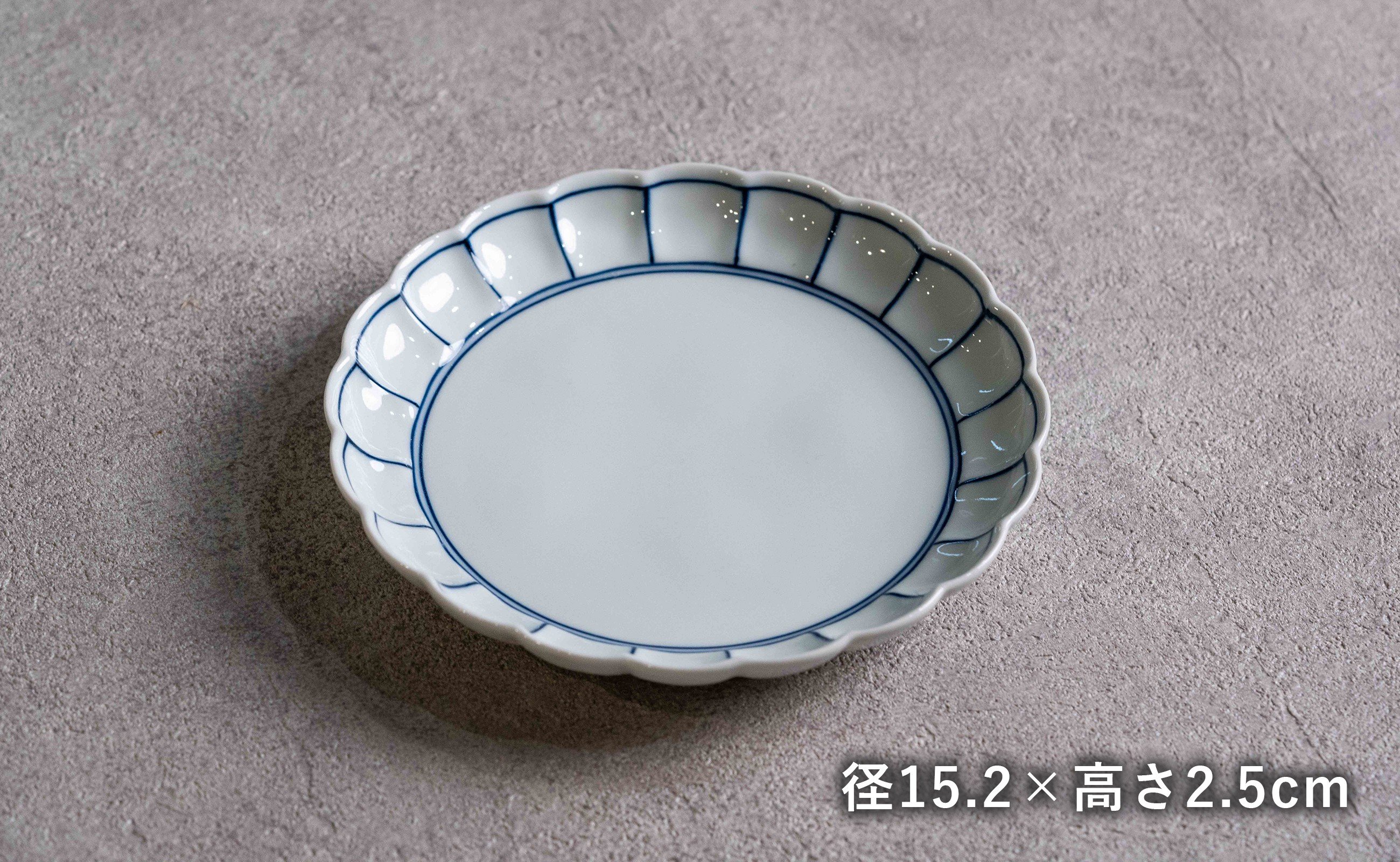- 【カネアオ】有田焼 皓洋窯 菊割五寸皿 染付ふちどり 5枚セット