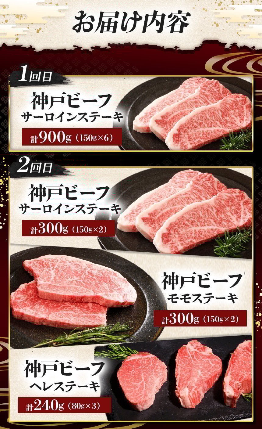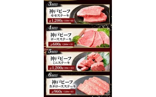 - 【6回定期便】神戸牛ステーキ豪華頒布会【毎月定期便】Ι 神戸牛 ステーキ 6回定期便 毎月定期便 頒布会 高級肉 A5ランク 最高級 国産黒毛和牛 厳選 霜降り とろける食感 上品な甘さ 濃厚 旨味 サーロイン ヘレ モモ いちぼ ひうち 豪華ステーキセット 贅沢 グルメ ご褒美 スキンパック 密着包装 急速冷凍 流水解凍 変色防止 お取り寄せ 贈答用 プレミアム 兵庫県 上郡町