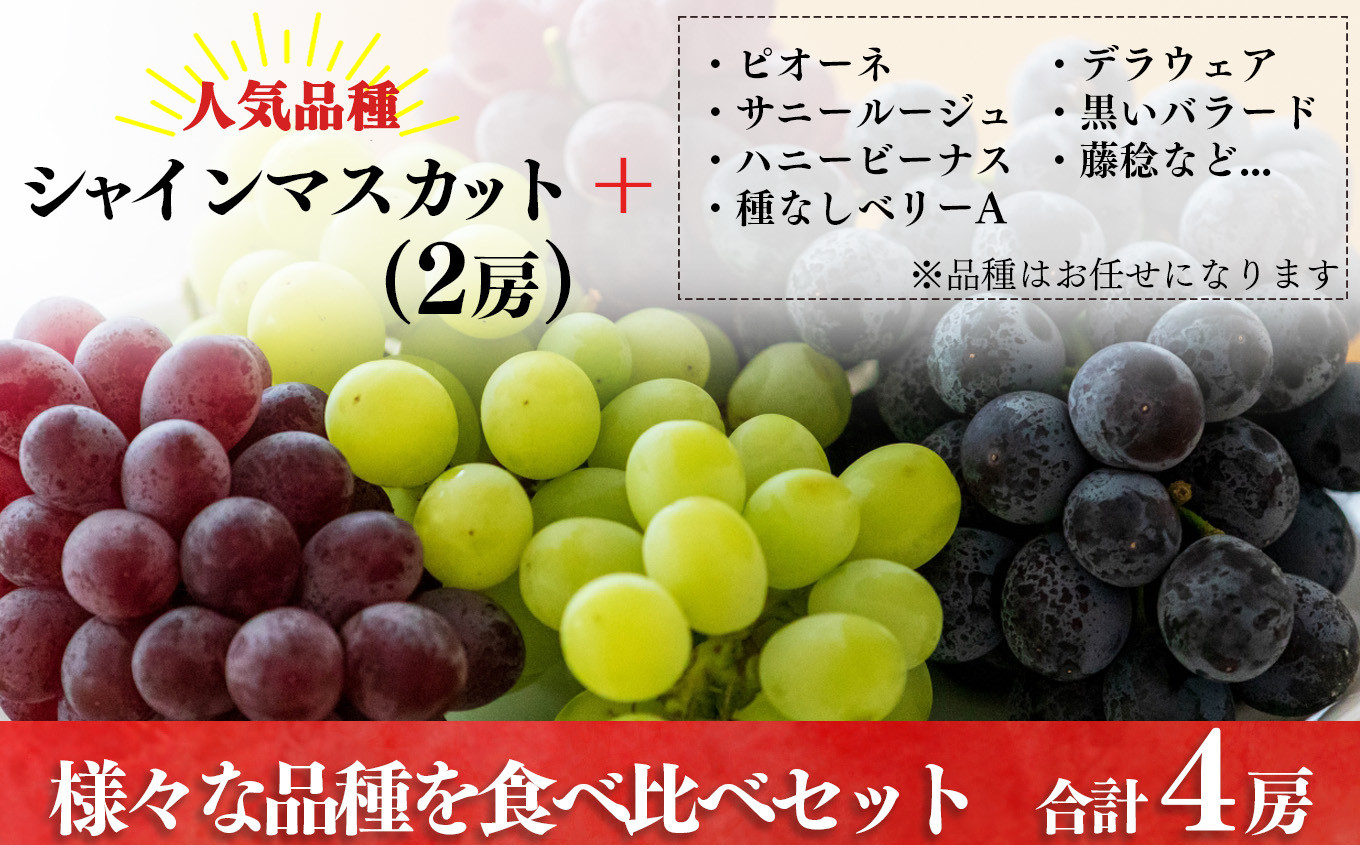 - シャインマスカットと季節のぶどう セットB(4房入り)約2kg | フルーツ 果物 くだもの ぶどう 葡萄 ブドウ シャイン マスカット 奈良県 平群町 季節 セット