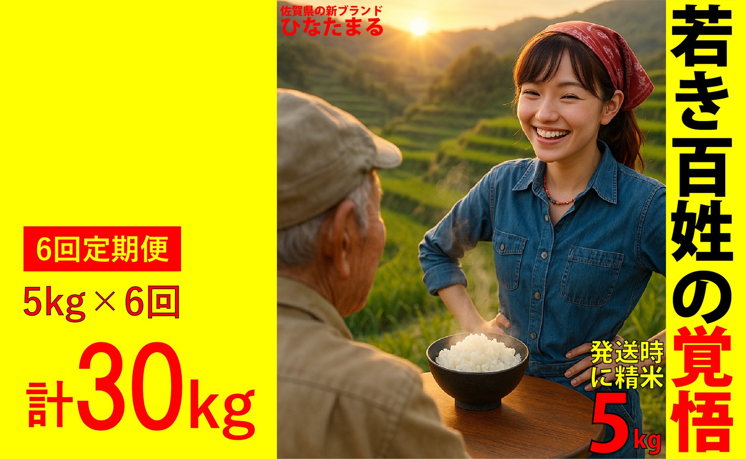 - 【定期便】全6回 佐賀県新品種 ひなたまる 白米 5kg 計30kg オリジナルブランド「若き百姓の覚悟」【10月下旬以降発送開始】