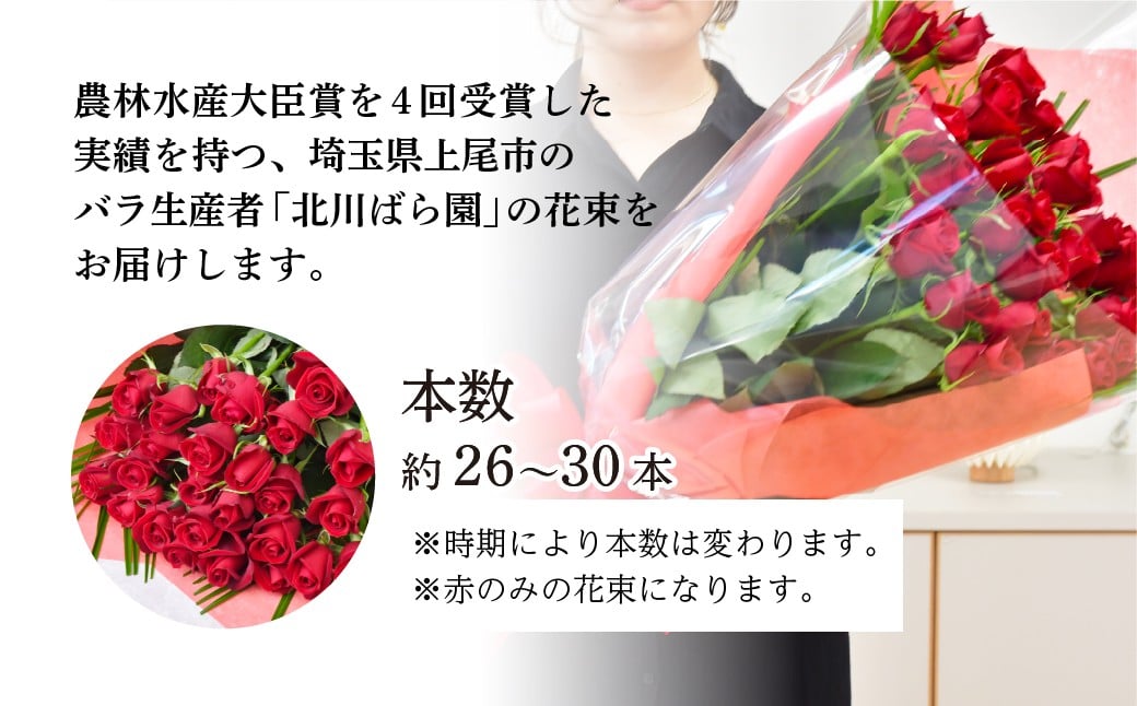 <配送エリア限定・着日指定必須> 生産農家直送 バラ花束 新鮮 赤 約26~30本 | バラ ばら 薔薇 ローズ 赤 花束 着日指定可能 誕生日 記念日 お祝い ラッピング リボン ギフト 農林水産大臣賞 プレゼント 贈り物 常温 生花