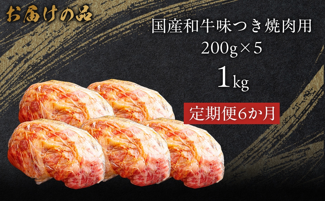 【6か月定期便】国産和牛味つき焼肉用 1kg (200g×5) 【ふるさと納税 人気 おすすめ ランキング 肉 牛肉 和牛 国産和牛 牛 国産 国産牛 にく ニク 味付き 焼肉 バーベキュー BBQ 北海道 室蘭市 送料無料】 MROBM018