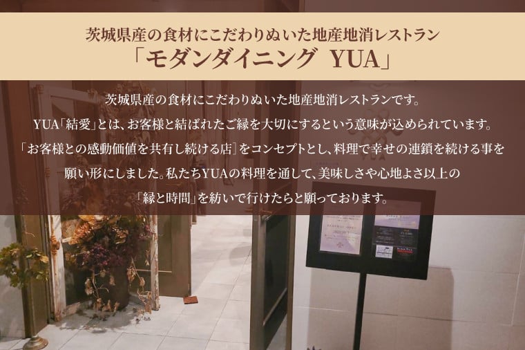 モダンダイニングYUA ご飲食チケット ディナーコース2名様 1ドリンク付き 9,000円×2枚【茨城県産 地産地消 イタリアン 大人空間 おしゃれ 水戸市 茨城県】(IR-4)