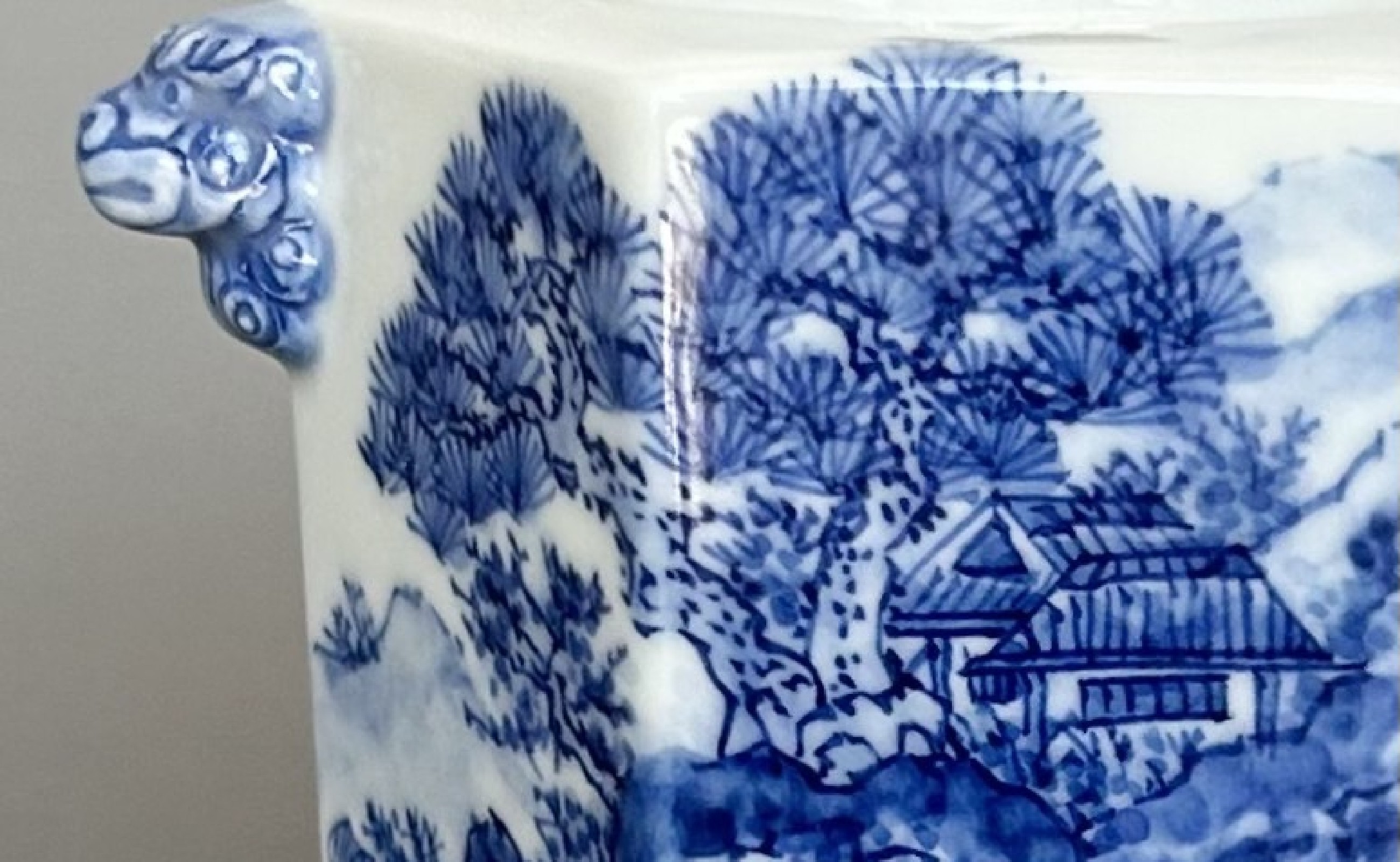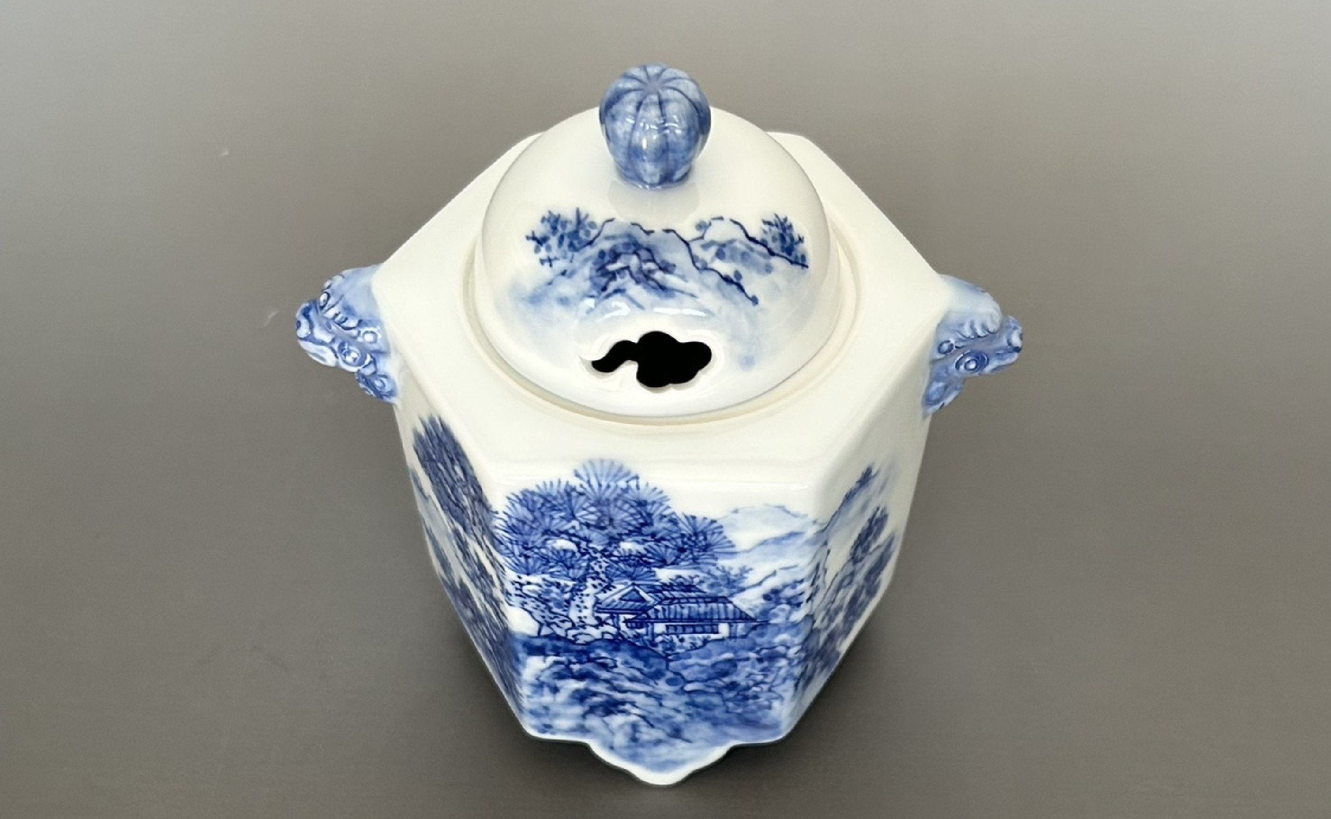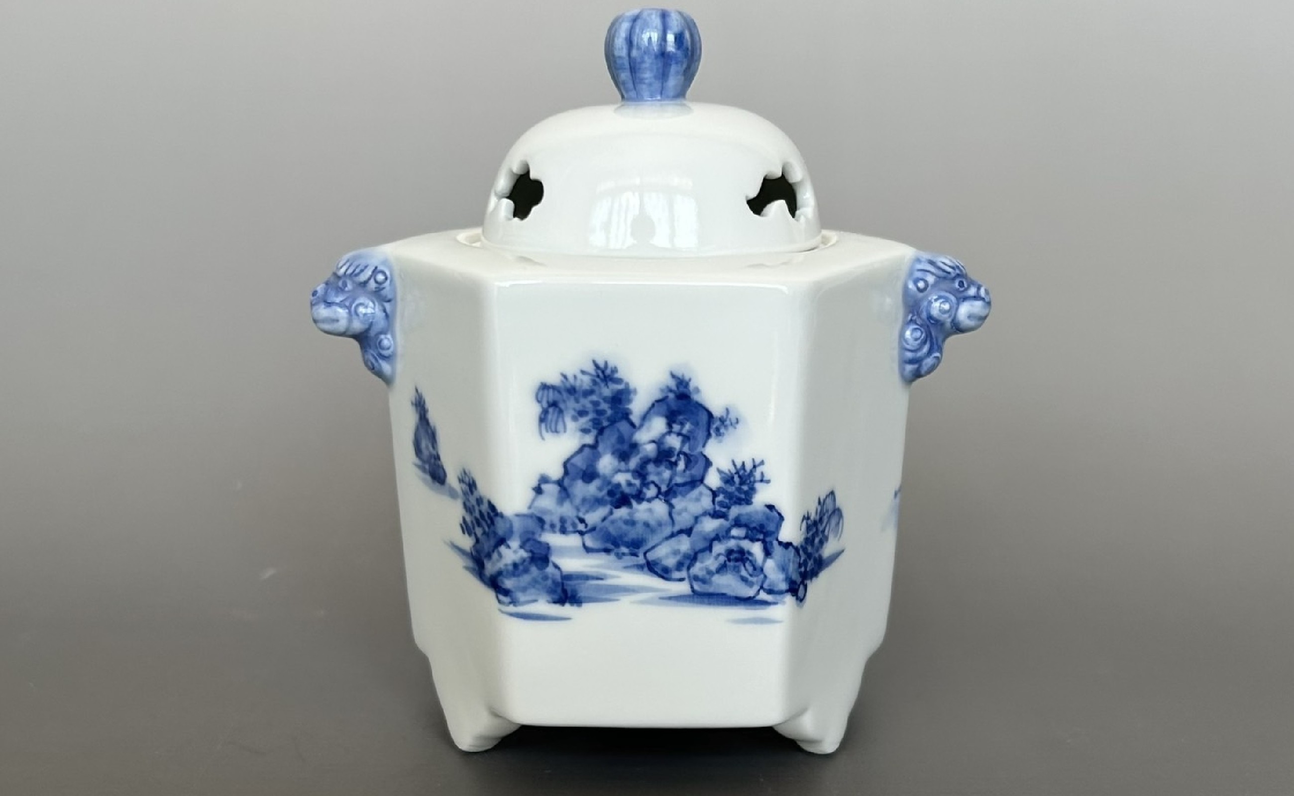 - 有田焼 山水絵六角香炉 【起山窯】香炉 お香 インテリア 山水絵 岩絵 80000円 A80-62