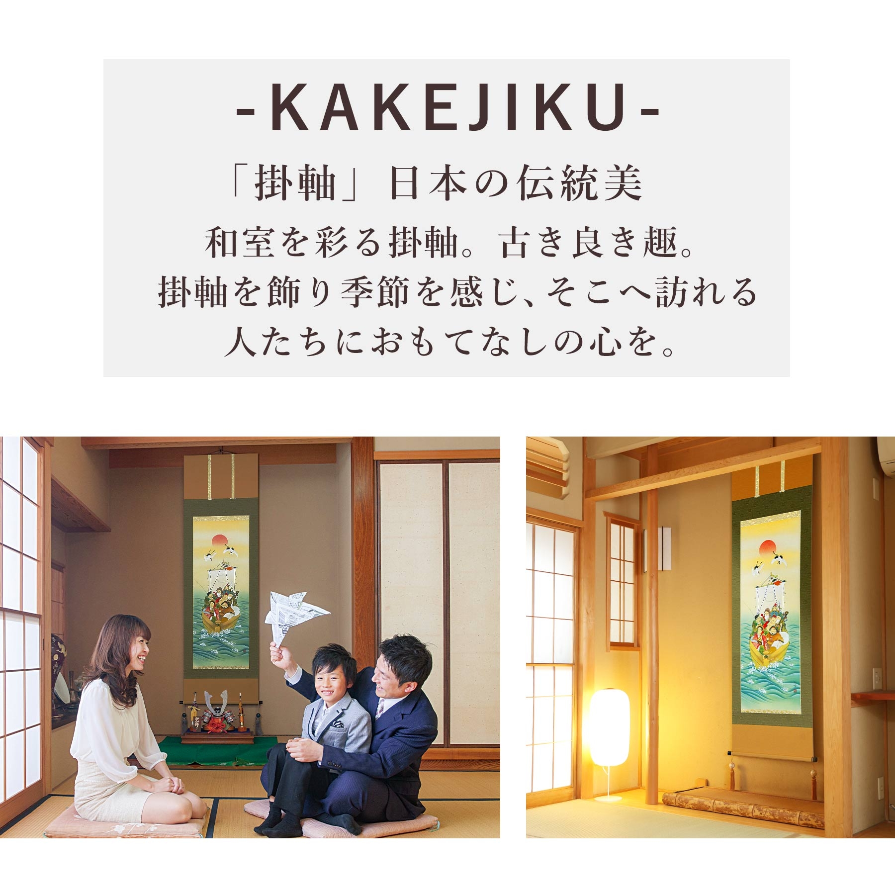 掛け軸「七福神」 柳原秋峰 尺五立 サイズ:54.5×190cm 桐箱付 掛け軸 和室 おしゃれ 日本画 表装 床の間